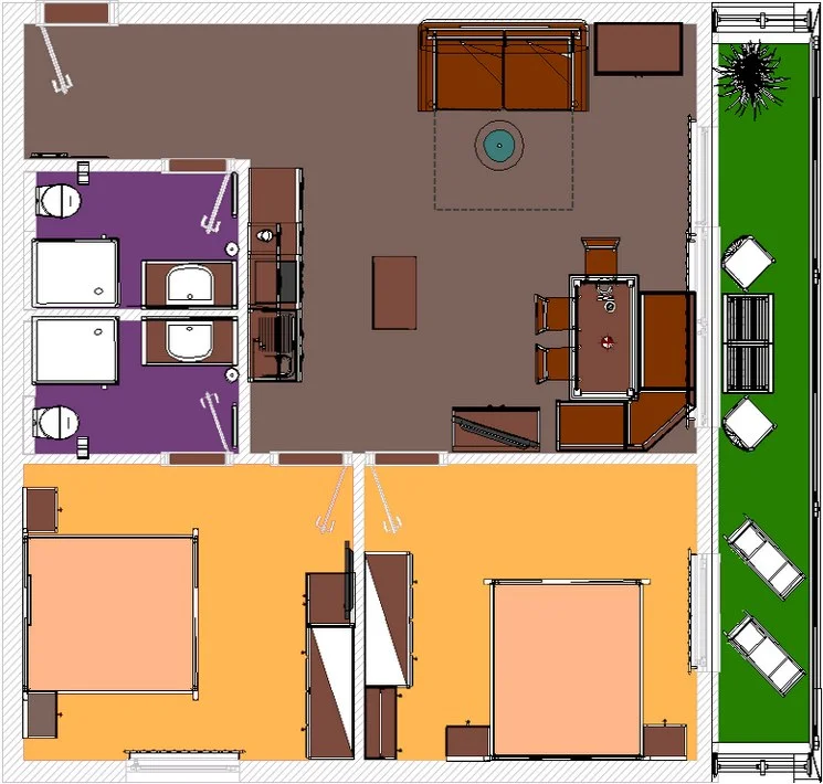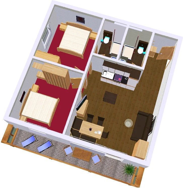 2 Schlafzimmer mit Doppelbett (Bettenden offen)
